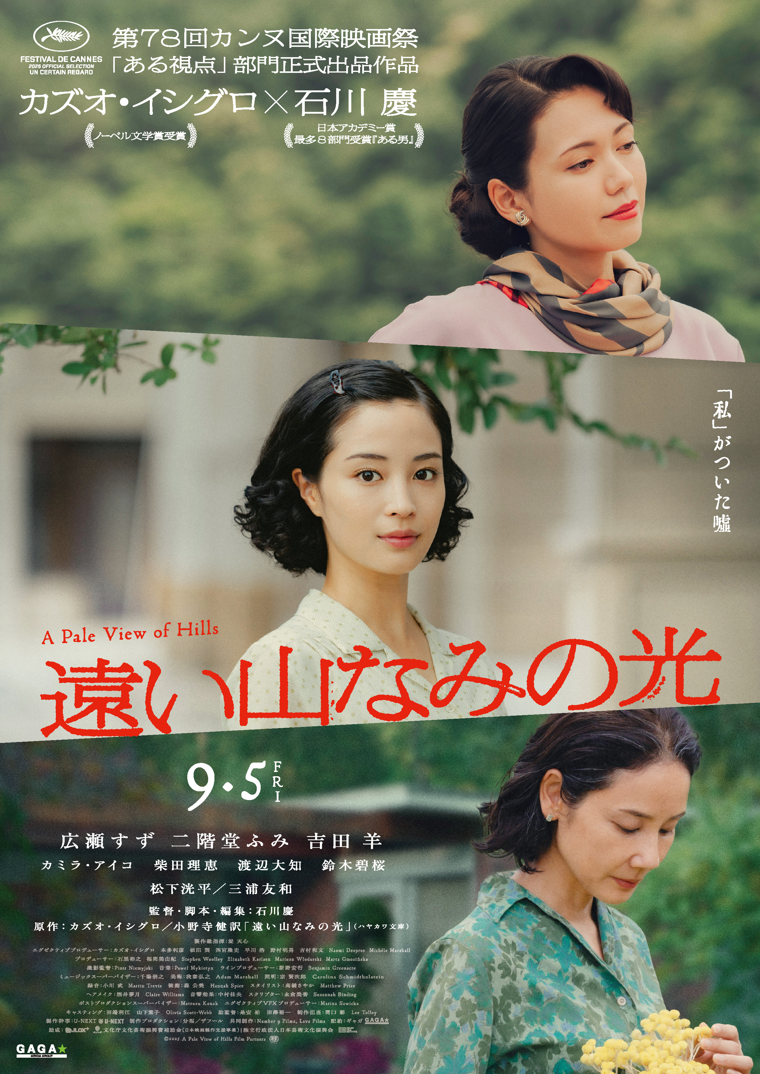 映画『遠い山なみの光』の大ヒットロングランを記念して、11月23日(日)にkinocinema新宿にてキャスト、監督によるお客様のご質問にお答えする上映会が決定しました!皆様のご来場をお待ちしております。 <実施概要>【日時】11月23日(日) 11:30の回(上映後)【会場】kinocinema新宿【登壇】石川慶監督、吉田羊 ※予定・敬称略【チケット料金】通常料金 ※前売券・各種割引適用可 ※無料鑑賞券使用不可【チケット販売】WEB=11月15日(土)00:00(11月14日(金)24:00)より劇場ホームページにて販売開始劇場窓口=11月15日(土)劇場オープン時から販売(残席ある場合のみ) <注意事項>・詳しい料金・購入方法は劇場へお問い合わせください。・転売目的でのご購入は、固くお断り致します。また、転売で入手したチケットであることが発覚した場合には、ご入場をお断わりさせていただく場合がございます。 ・登壇者および舞台挨拶の予定は、都合により予告なく急遽変更になる場合がございます。・いかなる場合においても、途中入退場はお断りさせて頂きますので、予めご了承ください。・お客様同士のトラブルには、主催者および会場は一切責任を負いかねます。・特別興行の為、各種招待券はご使用いただけません。・場内でのカメラ(携帯電話含む)・ビデオによる撮影、録音等は固くお断りいたします。当日は荷物検査を行わせていただく場合がございます。・感染予防のため、体調に異常のある方は、来場をお控えください。・緊急事態等に伴う主催者側判断による中止の場合を除き、ご購入者様によるいかなる事情が生じましても、ご購入・お引換後のチケットの変更や払い戻しはできません。・全席指定となります。チケットをお持ちでない方はご覧になれません。・お客様の当催事における個人情報(肖像権)については、このイベントにご入場されたことにより、上記の使用にご同意いただけたものとさせていただきます。