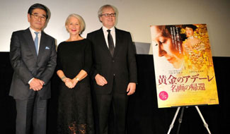 11月27日公開の映画「黄金のアデーレ 名画の帰還」より、 東京国際映画祭の舞台挨拶に主演のヘレン・ミレンとサイモン・カーティス監督が登壇しました!レッドカーペットでもゴージャスなドレスと丁寧なファンサービスで集まった人々を魅了していたヘレンは、「日本のファンの方は本当に素敵で、すばらしい経験でした。」と振り返り、「 オファーは沢山きますけど、良い映画のオファーというのは正直少ないのです(笑)。ですがこの作品・マリアという役柄は良いものだと私の女優魂が伝えてくれたのです。非常に胸を打たれました。」と終始チャーミングな笑顔で映画の魅力を語りました。 カーティス監督は映画のきっかけについて「これはまさに21世紀の物語。自分の祖母もマリアに似たような経験をしていることもあり、マリアのことを心から尊敬している。」と明かし、 キャスティングについて「この役をヘレンにぜひやってもらいたいという夢が叶ってとても光栄です。」と改めて主演にヘレン・ミレンを迎えられたことの喜びを語りました。 また、特別ゲストとして二科展入選経験もあり、絵画に造詣の深い石坂浩二さんが、映画のタイトルに掛けて黄金に輝く花束を持って登場!石坂さんは「まるで自分のことのように、心に響く名作」と作品を称賛し、同世代でもあるヘレンについても「エリザベス女王と同じ気品といい意味での威圧感がある、本当に美しい方」と大絶賛。貴重な日英名優の対面が実現となりました。公開までいよいよあと一ヶ月。お楽しみに!
