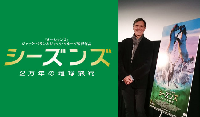 ◆日程:10月23日(金)◆場所:TOHOシネマズ六本木ヒルズ スクリーン9(旧5)◆登壇者:ジャック・クルーゾ監督公開前に一足先に本作を鑑賞しようと会場には多くの観客が詰めかけました。満席の会場に、ジャック・クルーゾ監督は感激の様子をみせると、「こんなに大勢の方にお越しいただけるなんて、とても感動しています。今回この作品が上映されるのは、この場所が初めてのことです。『オーシャンズ』のときも、多くのみなさんに受け入れていただきました。今回も前作同様、熱い想いでみなさんが受け入れてくれることを願っています。」とコメント。6年前の東京国際映画祭のオープニング作品であった『オーシャンズ』から6年ぶりの映画祭の参加となった本作。クルーゾ監督は、6年前は共に来日したジャック・ぺラン監督の不在について、「彼とは『WATARIDORI』、『オーシャンズ』そして、この『シーズンズ 2万年の地球旅行』と15年ほど一緒に仕事をしています。なので、今日この場に彼がいないことを悲しく思っています。彼もきっとこの場所をシェアできたら幸せだったろうなと思います。」と語ると、司会よりジャック・ぺランからの手紙が読まれました。以下手紙内容:「本作のTIFF上映に合わせ、東京に訪れることができず、大変申し訳なく思っております。この機会に皆様にお会いすることを非常に楽しみにしておりました。家庭内の事情によりパリに残らなくてはならず、非常に残念に思っております。共同監督であるジャック・クルーゾ氏が東京に訪問させて頂きます。じゃ本日ご来場いただきました皆様には心より感謝申し上げます。私たちの映画とTIFF2015の成功を祈っております。 ジャック・ペラン」<MCとのトークセッション>■本作は動物を通して2万年にわたる自然の歴史を描いていますが、今までにないネイチャードキュメンタリーだと思いました。一体なぜこの作品を作ろうと思ったのでしょうか?また、アイディアはどこから来ているのか?―これまでに空を飛ぶ鳥類たち、海で泳ぐ海洋生物たちと撮影をしてきて、その後に当然のことながら地上の動物を撮影したいと思ったわけなのですが、それだけでは映画にするには映画にとって不十分だと思いました。それから一年ぐらいかけて構想し、ある日突然、森の住人たちの歴史を、時空を超えて語ろうと考えついたのです。そして、これまでは人間たちの視点からしか描かれてこなかったものを、彼ら動物からの視点で描こうと思ったのです。■さまざまな動物が出てきますが、特に撮影にあたりこだわった動物はいますか?―本作には70種類ほどの動物が登場しますが、その中でもオオヤマネコには一番の思い入れがあります。映画の中では、彼らの子供からの成長過程が描かれますが、撮影中は我々に付き添い、俳優として素晴らしい活躍してくれました。これにはぺラン監督も絶賛していました。みなさんにも是非注目して観ていただきたいです。■作品ごとに最新撮影機材で見たことのない角度での動物の姿を撮影していかれていますが、今作においての最新テクノロジーツールを教えてください。―いつもぺラン監督と仕事をするときに挑戦していることは、どうやって動きの早い動物たちに寄り添って、生命の躍動感溢れる姿をそのまま撮影できるかということです。今回は、電動式の四輪の安定感のある静穏スクーターを新しく開発しました。この機材により、時には動物たちを先じんて、または寄り添って撮影することができました。■常に自然と向き合う中で思う通りにならずご苦労されたと思いますが、一番大変だったり過酷だったりするシーンはありますか?―映画では二万年前の氷河期から描かれるのですが、我々は二万年前に生きていたであろう動物と、似ている動物を探さなければならなかったのです。そこで、我々は極北まで行き、氷河期の原始的な姿を今だに持つジャコウウシを撮影しました。ただし、本作は四季の移り変わりも同時に描いている作品なので、撮影するだけではダメなわけです。自然の環境というものは、いつも我々の思い通りにはいかないわけでから、そのタイミングを待たなければならないという、運に頼っての撮影も行っていました。■動物の姿を見ているだけで楽しい97分ですが、本作を通して特に強く伝えたいメッセージはございますでしょうか?―人間と動物たちの共生の時代はとても長く、しかし波乱万丈の日々でした。そのように、動物たちが生きるのに難しい時代を経ていきながらも、まだ野生の世界というものは、この地球上に残っているんだ。決して絶滅してはいないんだということ。そして、子供たちにまだ残っている、野生の世界に新たな眼差しをもってほしいというメッセージを込めました。■最後に、今後の構想があればお聞かせください。日本も沢山自然が残っていますので是非日本でも撮影してほしいですがいかがでしょうか?―今までラッキーなことに日本では、鶴や巨大
