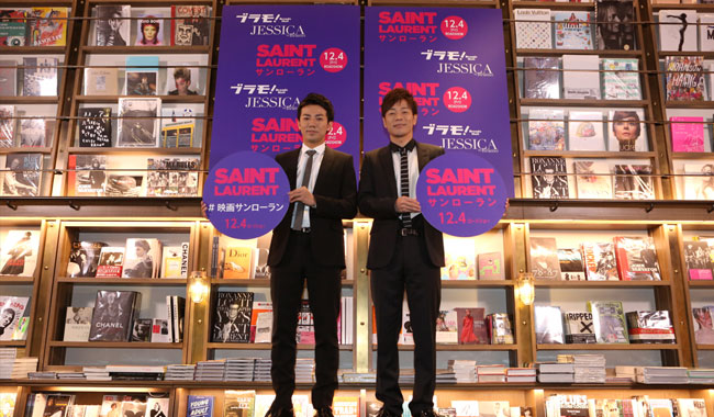 この度、ハイブランド専用モール“ブラモ”協賛のもと、この秋ファッションをテーマにリニューアルしました渋谷TSUTAYA(7Fフロア)にて、本会場初のイベントを開催いたしました。ゲストには、関西でファッションで右に出るものはいない!と言われている陣内智則さん、そして自称ファッショ二スタのピース綾部さんが登場。ファッションが大好きということで今回のイベントが実現いたしました。とびっきりの「サンローランアイテム」を着用し、華々しく登場、イケメン芸人2人によるファッション対決も行いました。 ■日程:11月25日(水)10:30~■場所:WIRED TOKYO1999 / SHELF67 SHIBUYA TSUTAYA■登壇者:陣内智則/綾部祐二(ピース) ★ハイブランドを普段から着られますか。 陣内:ハイブランドを普段から着ることはないですけども、多少は意識します。同じ服を着てることが多いですが、仕事のあいまに買い物行ったりとか、スタイリストさんが持ってきた服でかっこいいのがあったら買ったりとかはしますね。 綾部:もともと持ってるんですけど、今日こういったイベントにお呼びいただけるということで、リスペクトの意味を込めて、今期のサンローランのセットアップと、シャツとタイを全部購入し、揃えさせて頂きました。ハイブランドのスーツであったり、アイテムを着ることによって、やっぱり背筋がぴんとするというか、自分の中のステータスも上がりますし、気持ちがいいものだと思うので、着ることが多いですね。 ★映画『サンローラン』はいかがでしたか? 陣内:まだ映画を見れていないのですが、綾部に話しを聞いてサンローランの苦悩が凄く伝わってきましたし、栄光と挫折、そして男性の恋愛があるみたいなんでね。本当に観たいなと思いました。あとファッションショーが圧巻なんですよね。そこが見どころですね。 綾部:サンローランってモードの帝王とまでいわれた世界的なデザイナーなんですけど、人間が華々しいところからここまで落ちていくのかと。あと何といってもファッション。60年代から70年代のモードファッションを再現するに当たって、しっかりと素材から作り込んだと。そしてファッションショーのシーンが本当に臨場感があってPVみたいな感じです。すごく格好良く、クラブのシーンとかセンセーショナルな感じで。僕はリビングのメインの絵は、サンローランの肖像画を飾ってますので、それくらいサンローランが好きです。サンローランの生い立ちとかも把握してますから。本当に素晴らしい作品だと思いました。 ★そして、本日はイベントの特別協賛ブラモより25万円相当のサンローランの女性向けハンドバッグを商品として提供していただきました。ということで、お二人にファッション対決をして頂くことに。1)本日のファッションポイント2)このファッションで行きたいクリスマスデートプランを競って頂き、女性誌「ジェシカ」編集部にジャッジを頂くという対決を開催! 陣内:イヴ・サンローランのジャケットは襟が小ぶりなんですよね、そこが素敵なポイントでして、バイカラーをポイントとして、普段着ない大人っぽさを出したいなと。クリスマスに着ていったら女性も喜ぶのでかなと思いました。クリスマスのデートプランは、何事にも緊張と緩和が大事だと思うんですよね。デートでもそれを大事にしたいので、クリスマスって緊張感があるじゃないですか、サンローランのスーツを着ることによって緊張感がマックスになるわけじゃないですか、高級レストランかな、クルージングかなと女性に思わせておいて、回転寿司に行くんです。女性にはせっかくのクリスマスなのに、と思わせたところで、先ほどのイブサンローランのバッグが流れてくるんですよ。「大きいサーモンやな、メリークリスマス!」と、そしたら店の皆さんがフラッシュモブをダンスする、ラストクリスマスが流れてくる。これがギャップのギャップ、これが緊張と緩和ですね。 綾部:今日はとにかくこの日のために購入したセットアップ、とにかくサンローランのシンプルさに忠実なファッションで、モノトーンのシンプルイズベストなファッションです。この服を着て、僕はクリスマスは逆に、年に1度の背伸びをしてよい時だと思っているんですよ。ドレッシーな恰好をしてもらって、表参道のイルミネーションを歩き、サンローランのお店にいってバッグを買ってあげて。その後も青山、表参道のモントークカフェに行くという、デートプランもシンプルに行きたいと思います。サーモンなんて言うのは論外です。 「ジェシカ」編集部の判定→陣内さんの勝ち!判断に非常に迷うところがあったのですが、大人の魅力と言うことで、今回は遊び心を重視しました。 陣内:勝ち目はデートプランじゃないですかね。女子はハラハラドキドキしたいのでは。リアルに欲しかったので、素敵なプレゼントになると思います。 綾部:いま彼女は居ないですけど、気になる熟女はいっぱいいますよ、若い子もいま