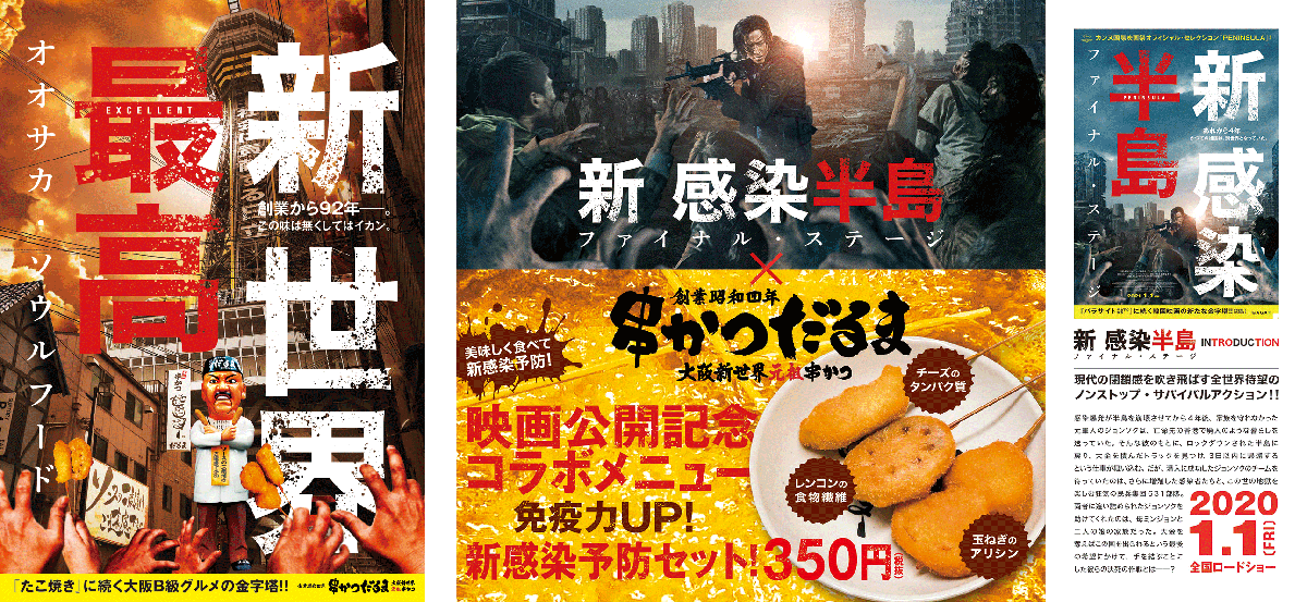 公開を記念し大阪を代表する老舗串かつチェーン「串かつだるま」とのタイアップが決定!対象店舗では映画の世界観を盛大にパロディしたポスターが掲出されるほかタイアップメニューが販売されます!
