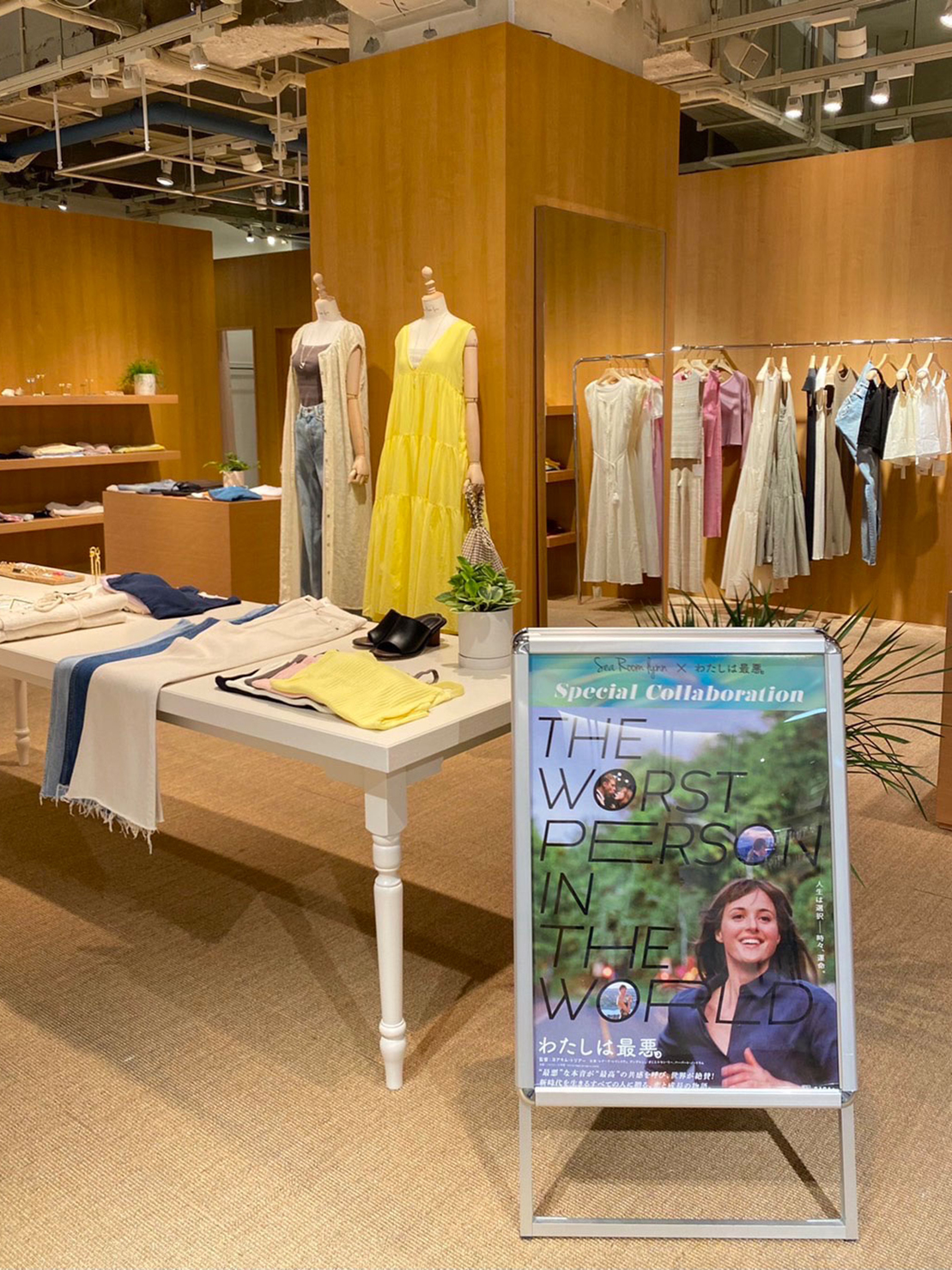 <海と都会が好きな“凛”とした女性のためのライフスタイルブランド>をコンセプトとして掲げ、ミレニアル世代女性に圧倒的な人気を誇る大注目ブラントD2CレディースブランドSea Room lynn(シールームリン)と「わたしは最悪。」のスペシャルコラボレーション決定!期間中、全国8店舗展開しているショップの店頭にて特別版のビジュアルポスターを限定展示。また7月1日から数日間限定で、映画とブランドがコラボレーションしたオリジナルデザインのトートバッグを購入者限定でプレゼント!20代~30代の女性に向けた大人気ブランドが、映画の世界観に共鳴し、ブランド発の映画とのタイアップとなります。数量限定のトートバッグはかなりのレアアイテムになること必至。