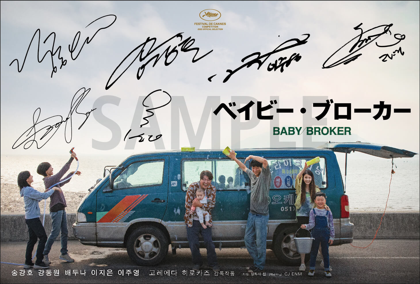 日本では初出しとなるビジュアルにソン・ガンホさん、カン・ドンウォンさん、イ・ジウンさん、イ・ジュヨンさんが来日したときにいただいたサインと、韓国から取り寄せたペ・ドゥナさんのサイン、更に是枝監督のサインをプリントして、ポストカードを作成しました!
