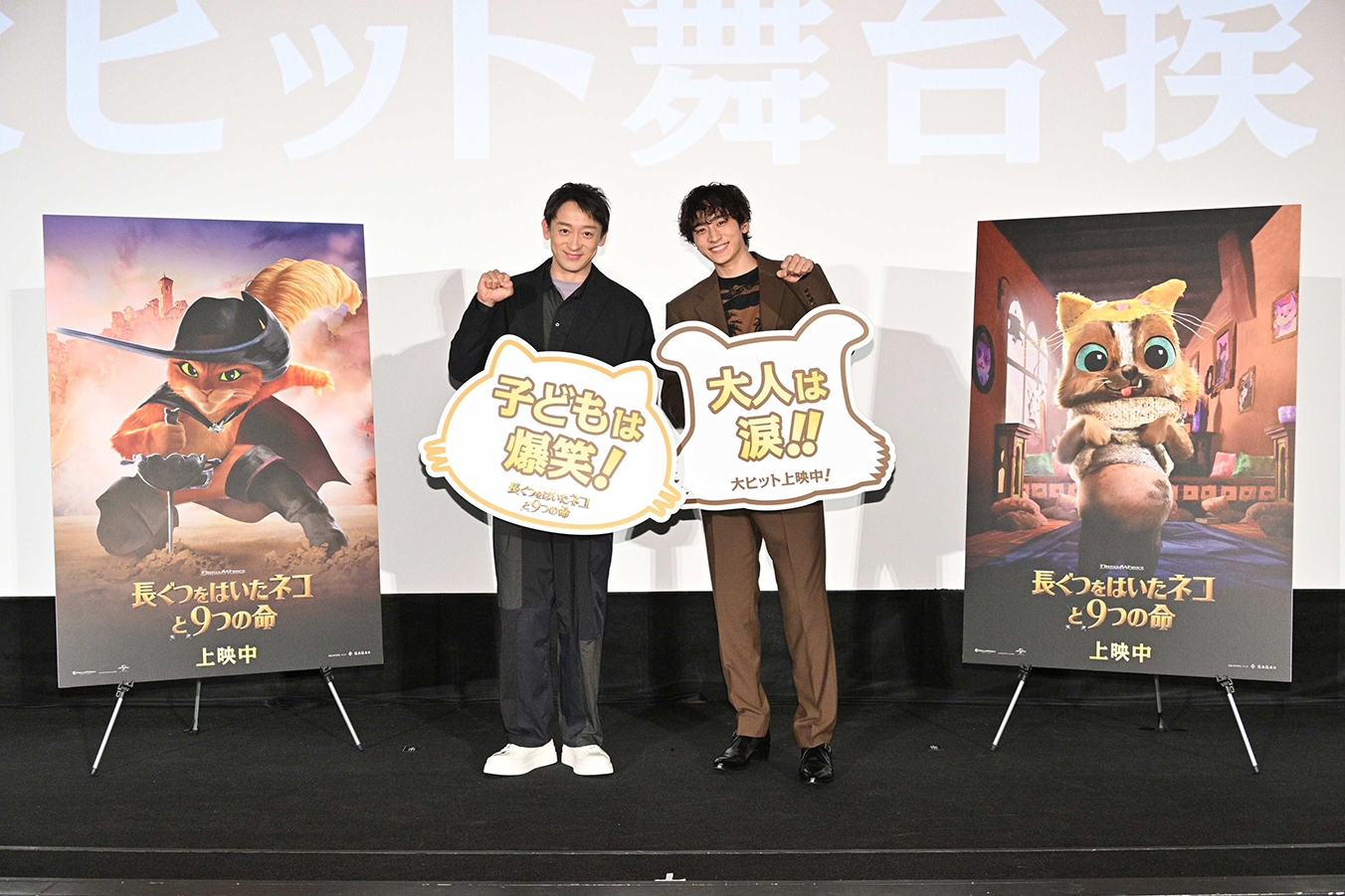 第95回アカデミー賞長編アニメ映画賞にノミネートされた『長ぐつをはいたネコと9つの命』が、現在大ヒット公開中!3月27日には都内劇場で大ヒット御礼舞台挨拶が実施され、日本語吹替版声優を務めた山本耕史さんと小関裕太さんが参加しました。