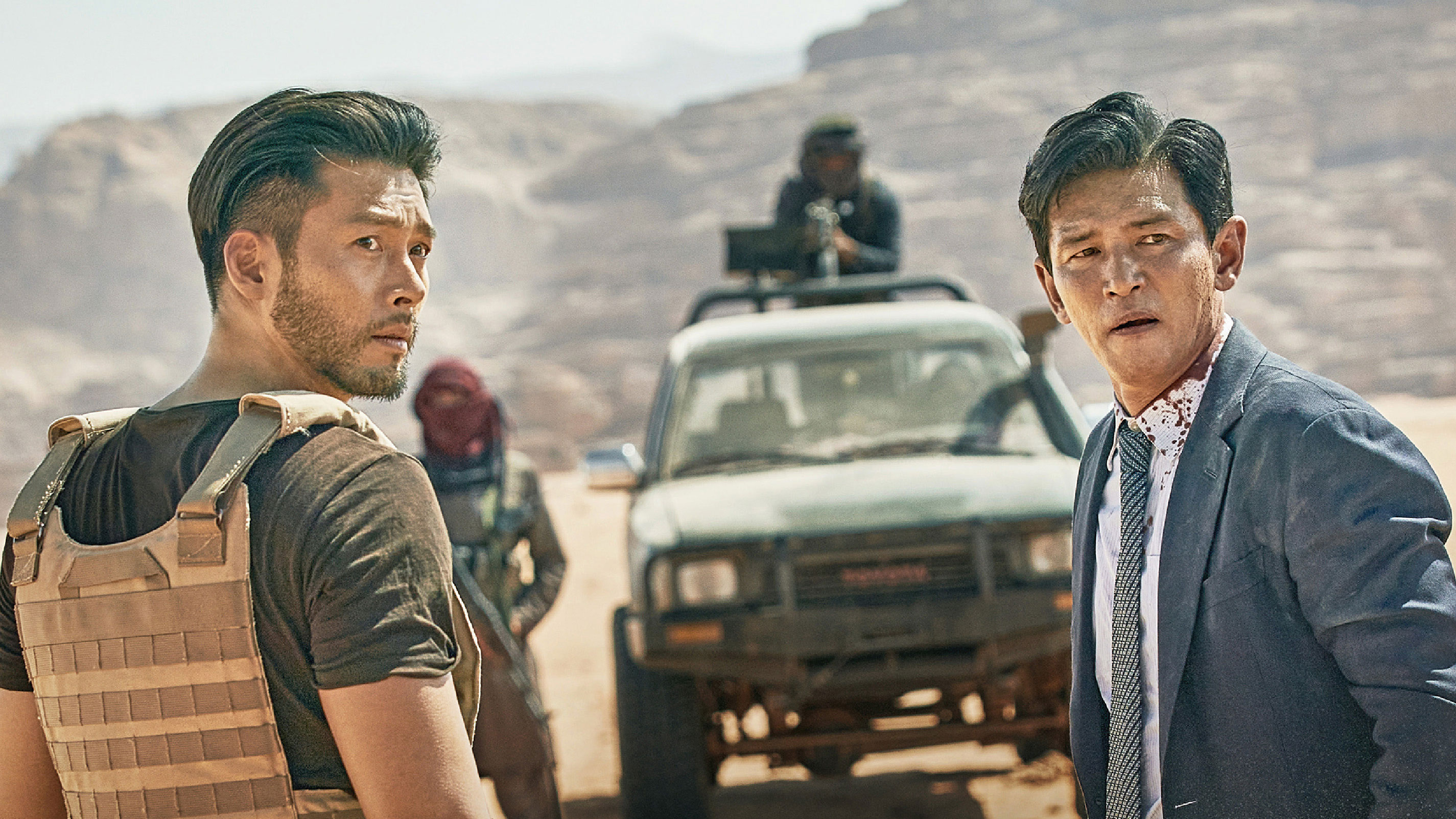 ファン・ジョンミンとヒョンビン劇中衣装の特別展示が開催中! アフガニスタンでの人質交渉作戦時(左の写真)に実際着用した貴重な衣装です