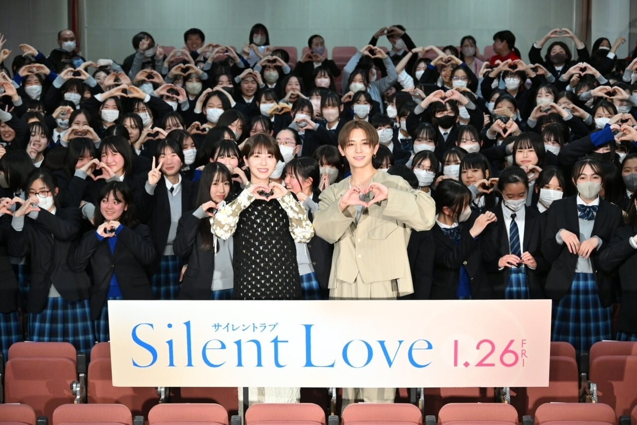 2人の一挙手一投足に大きな歓声が上がった「特別ホームルーム」もあっと言う間に終了の時間に。山田は「皆さんの元気な声を聞いて僕自身も元気が出ました」とキラースマイルを放ちながら「夢は見るものではなくて叶えるものだという言葉がありますが、みなさんは自分の行動力一つで自分の夢が叶うかどうかが変わっていく時期だと思うので、夢を持っている方はそれを叶えるために今を大切に生きてほしいです。『サイレントラブ』は人の行動力で人間が変わることを感じることの出来る作品だと思うので、映画館に行って『サイレントラブ』を見てもらって“私たちこの2人に会った!”と言って広げてもらえたら嬉しい」とユーモアを交えながら、学生たちに呼び掛けていた。