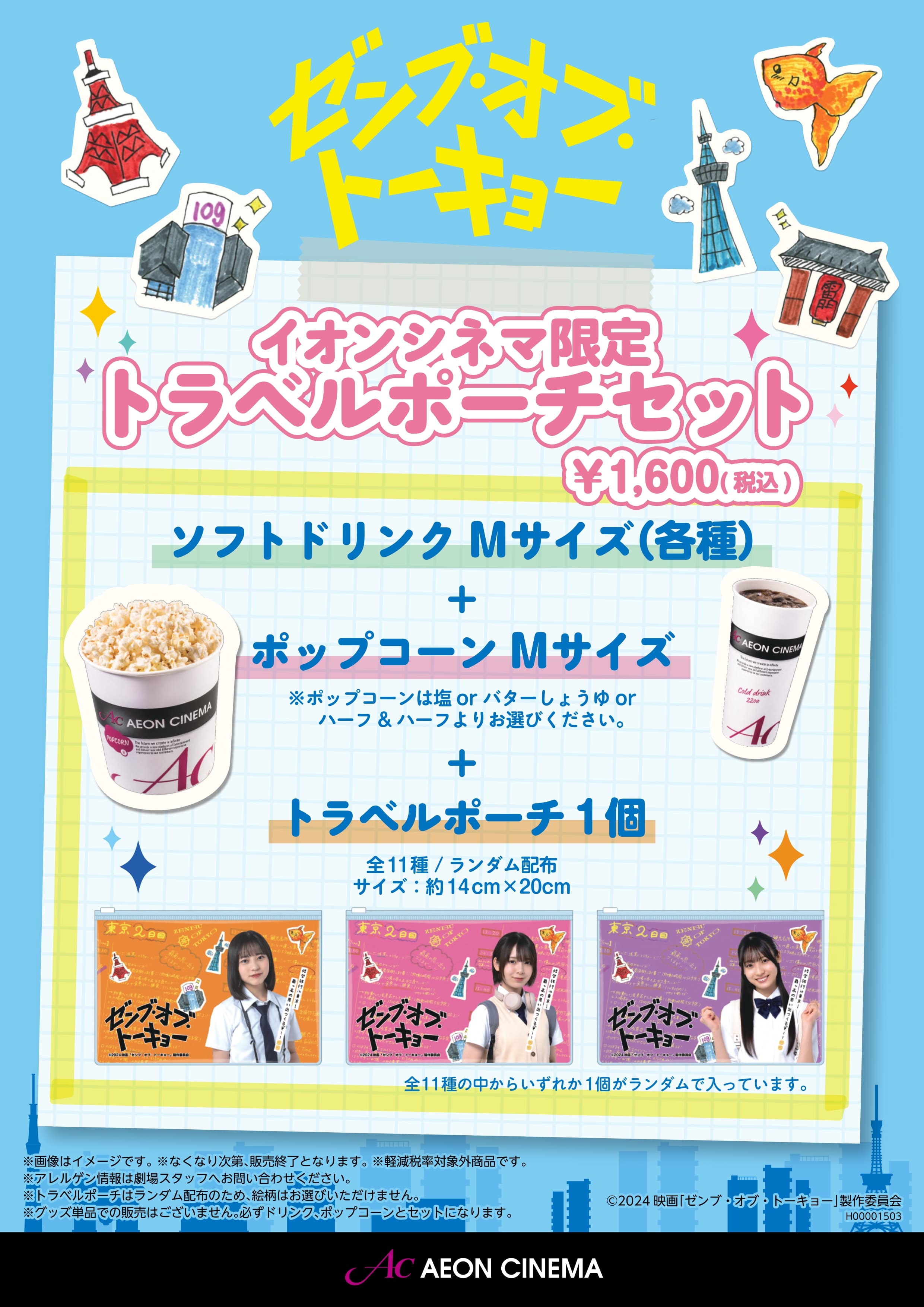 映画『ゼンブ・オブ・トーキョー』公開を記念して、「日向坂46」四期生メンバーのトラベルポーチ(全11種)と、ポップコーン・ソフトドリンクの3点がセットになったイオンシネマ限定トラベルポーチセットを11月8日(金)より全国20館のイオンシネマの飲食売店で販売開始します!