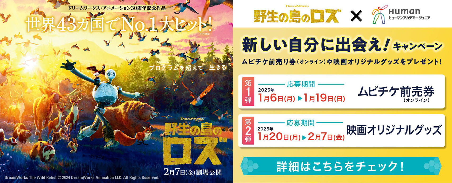 映画の公開を記念して、2025年1月6日(月)~2025年2月7日(金)までの間、「ヒューマンアカデミー ジュニア」とのコラボキャンペーンを開催いたします!