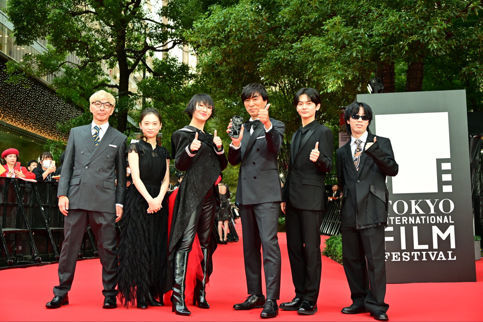 多くの報道陣と観客が集まる中、個性的な衣装で登場した新しい学校のリーダーズのSUZUKA、伊東蒼、齋藤潤、河森正治監督、脚本の橋本太知、音楽を担当したyonkey。普段のセーラー服衣装にアレンジを加えた燕尾服のジャケットの先に、赤のチュールがあしらえられたマニッシュかつフェミニンな2面性を表現した衣装で登場したSUZUKA。伊東や齋藤も黒のフォーマルな衣装に身を包み、レッドカーペットを盛り上げ、多くの観客から声がかけられる中、観客との触れ合いも楽しみながら、映画祭の雰囲気を楽しんだ。