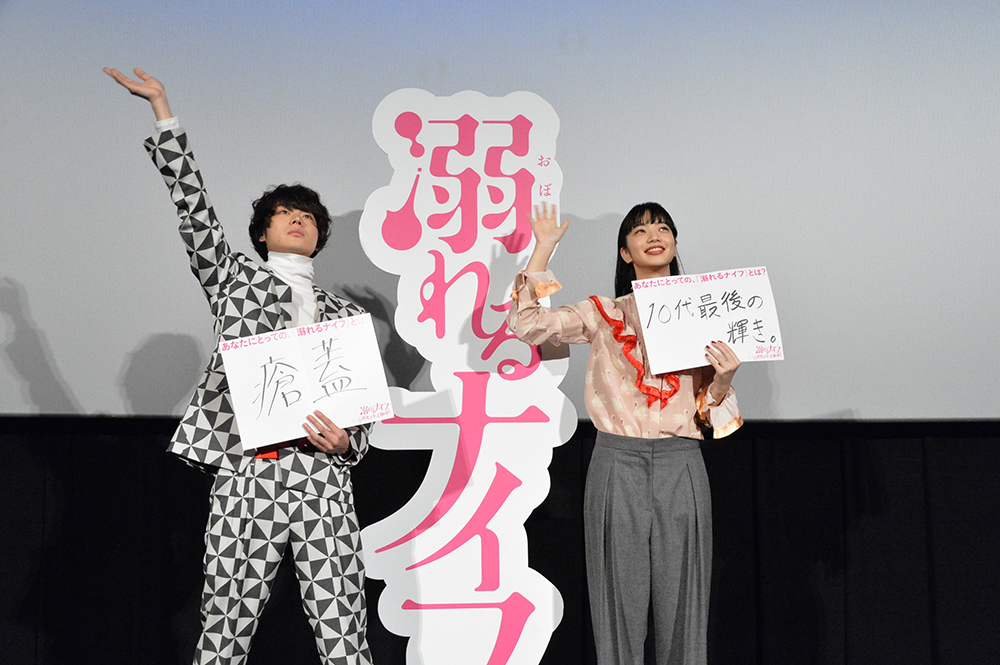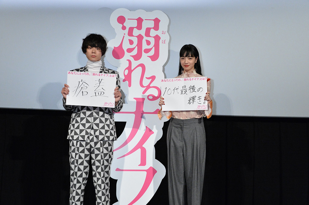 さらに、和歌山県で17日間というタイトな時間の中で厳しい撮影が続いた本作の総まとめとして「私にとって『溺れるナイフ』とは?」という質問に小松さんは「10代最後の輝き。」と答え、その理由について「撮影当時19歳だったし、山戸監督の初めての大きな映画だったということもあり、頑張らなきゃなという気持ちと、10代にしかないエネルギーや感情がみなぎっていて、その姿を撮影していただけて、映画にしていただけたということは一生の宝物です。いろいろ大変だったことや葛藤も全部です。」と語った。一方で菅田さんは「瘡蓋(カサブタ)」と独特の回答。その理由に「1年前に受けた切り傷がいま、カサブタなのかなと。撮影当時、身も心も擦り傷だらけだったんです。ナイフということもあって。完成しないかも、映画として観てもらえないかもしれないというヒリヒリ感もあって」と作品への責任感と想いを語った。