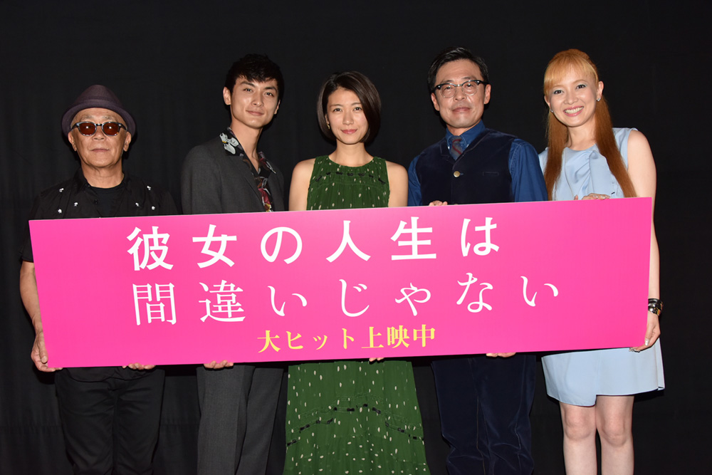 7月15日(土)、『彼女の人生は間違いじゃない』初日舞台挨拶が行われ、主演の瀧内公美さんをはじめ、光石研さん、高良健吾さん、廣木隆一監督、主題歌を担当したジャズシンガーのmegさんが登壇しました。