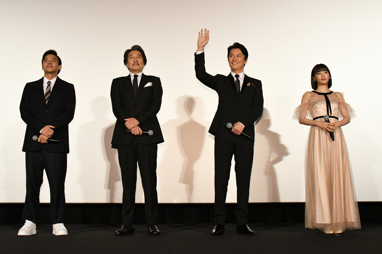 福山雅治さん、役所広司さん、広瀬すずさん、満島真之介さんにご登壇頂き、初日舞台挨拶を実施致しました。豪華キャスト陣が登場すると、満席の会場からは大きな拍手とともに大歓声が!