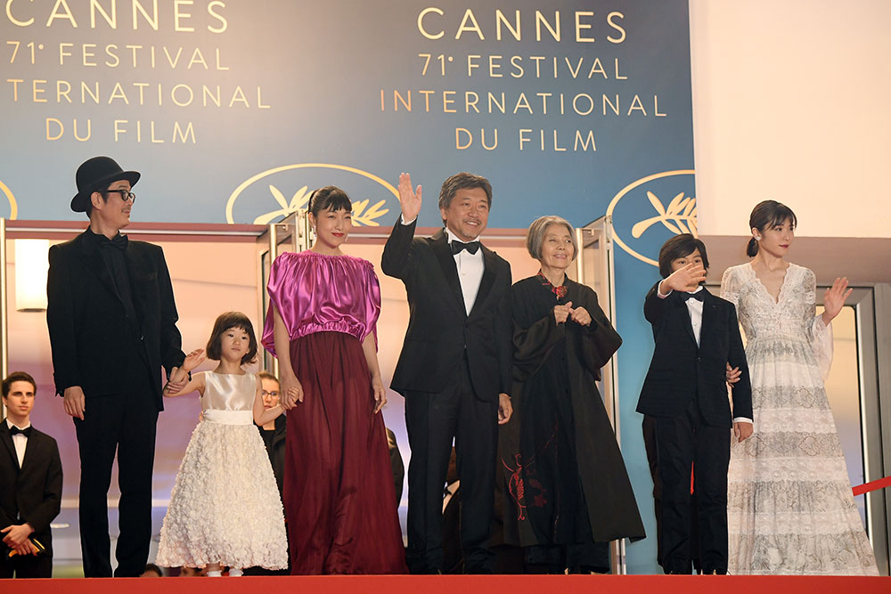 第71回カンヌ国際映画祭 「コンペティション」部門に正式出品されたことを受け、是枝監督、リリー・フランキーさん、安藤サクラさん、松岡茉優さん、樹木希林さん、城桧吏さん、佐々木みゆさんの7名がカンヌ入りし、レッドカーペットを歩き会場入り、世界の観客を前に公式上映が行われました。 上映後は、約9分間もの長さのスタンディングオベーションで観客から賞賛を受け、日本のメディアに向けた囲み取材が行われました。現地時間2日目は、フォトコールと公式会見が行われ、会見上では多くの海外メディアが駆けつけ次々と質問が飛び交い、会見終了後は、サインや写真撮影を求めるひとびとが殺到。プレス用に開かれた上映会終了後は絶賛の嵐で、是枝監督が新たに描く“家族”の物語に世界各国の心を感動で震えさせました。