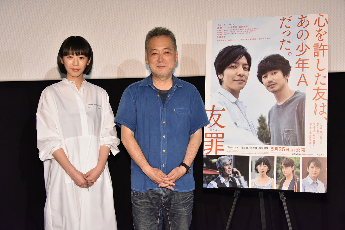 最後に、瀬々監督は、「『友罪』は、僕らも答えを探しながら作った映画です」と前置きしながら、「生田さん演じる益田が鈴木を飲みに誘うシーンで、鈴木が少し嬉しそうに「コンビニでつまみでも買って」と言うシーンは、加害者が何気ない、でもかけがえのない時間を感じる、個人的にも好きなシーンです。こういう宝物のような時間が、犯罪者だった人の何かを解き放ったり、逆にかけがえのない時間を奪ってしまったと気付く、そういうこともあると思います。そして、そういったかけがえのない瞬間を与えられるのは、家族だったり友人なのかなと。僕自身、完成した映画を観て、新たに発見しました」と力強く解説。その上で「千差万別でも良いので、皆さんにもこの映画を通して、何かを感じ取っていただきたいです。」と訴えました。続く夏帆さんも、「正直、賛否はあるかと思いますが、もし観ていただいた方の心に何か引っかかるものがあれば、家族やお友達にも伝えていただいて、皆さんで話してもらえたら嬉しいです」とご挨拶しイベントは終了しました。