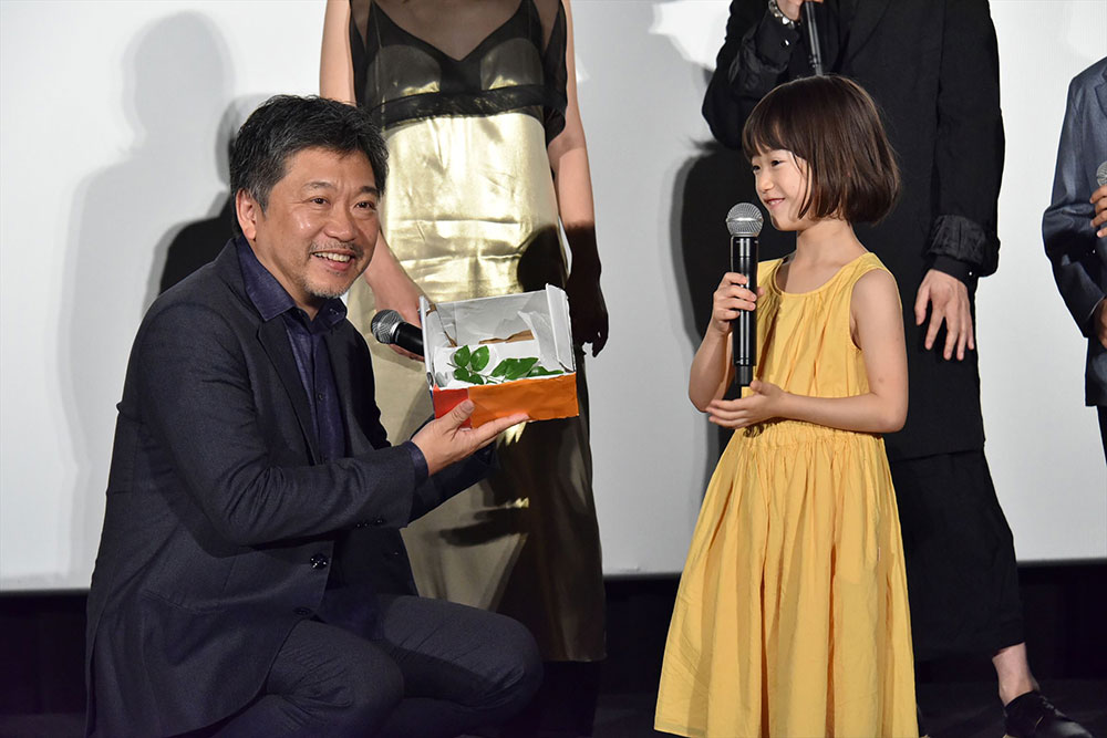 また、パルムドール受賞後すっかり人気者になった娘のゆり役・佐々木みゆが監督にプレゼントを用意。