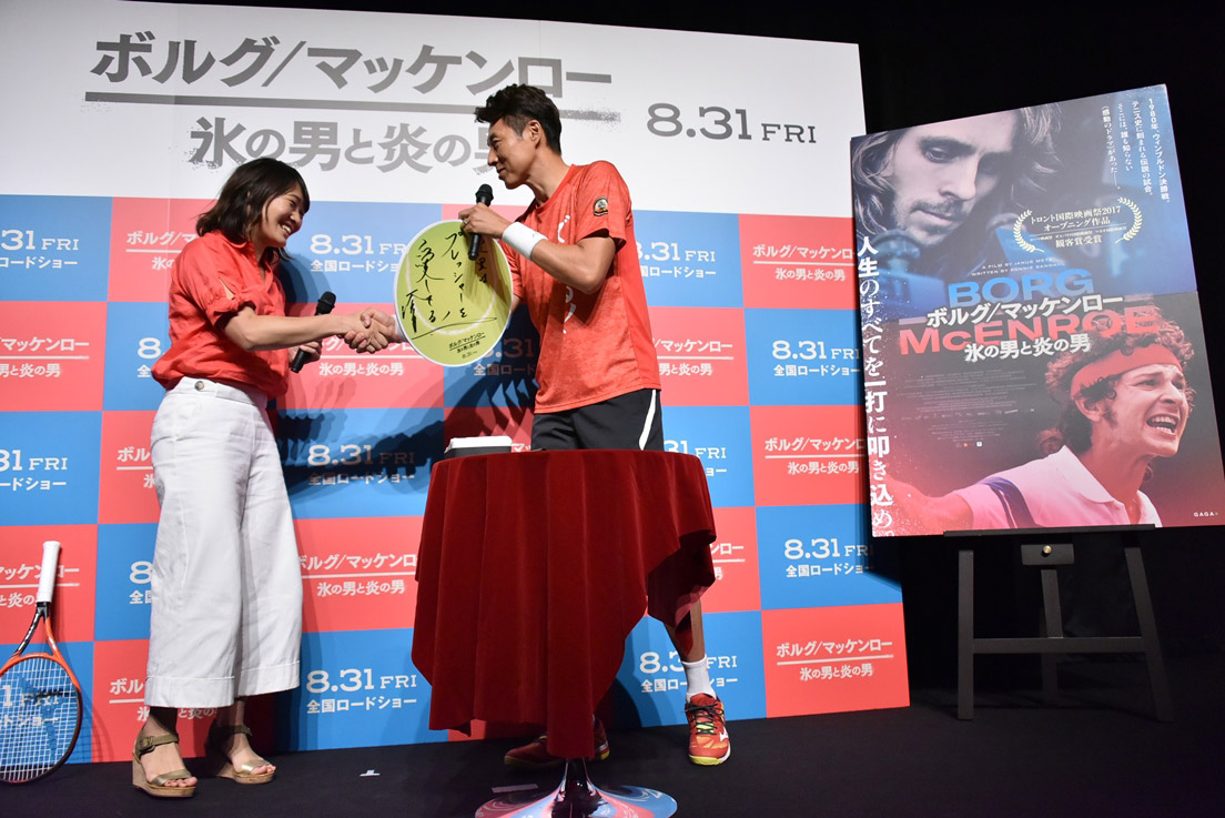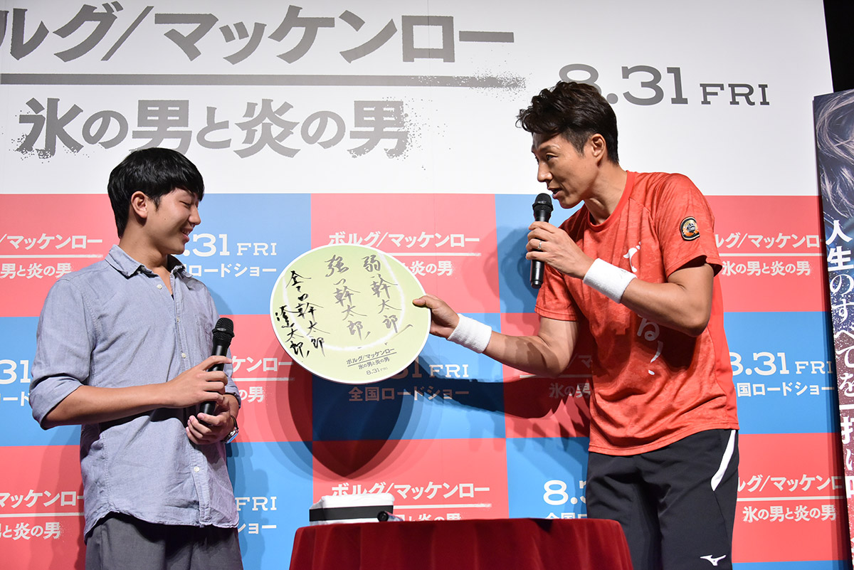 本作の公開直前イベントに「僕のテニスは、この二人の奇蹟の試合から始まった!映画を観ながら僕はウィンブルドンセンターコートで一緒に戦っていた!伝説を感じろ!そして戦え!」と熱いコメントをよせた松岡修造さんが登壇。