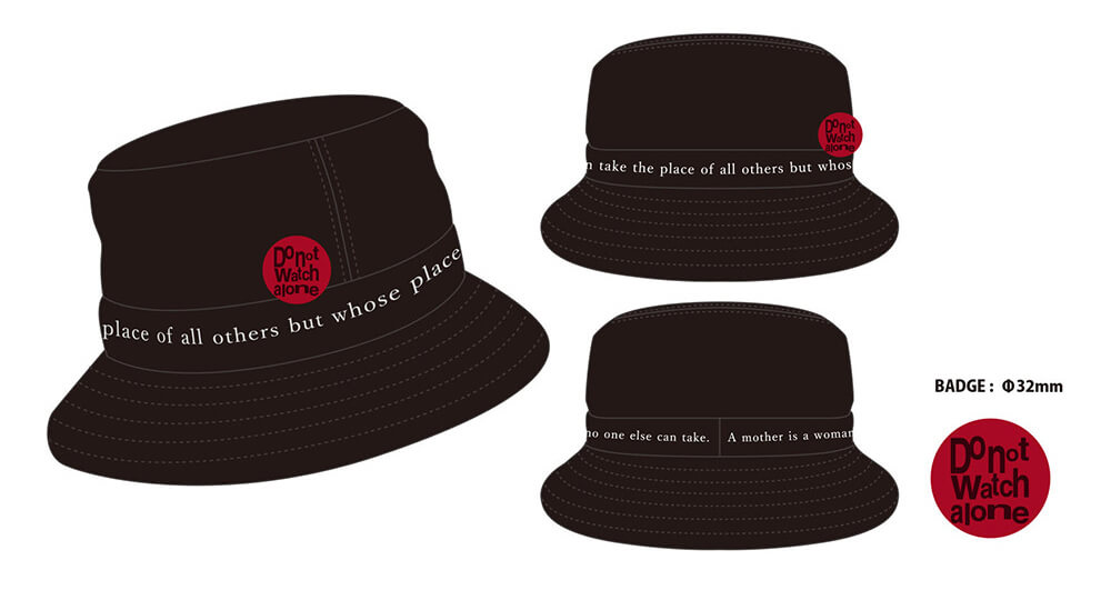 ハットメーカーCA4LAからは、本作劇中で登場する、フレーズデザインとして入り、映画のコピー「決してひとりでは見ないでください。」を意味する、Do Not watch Aloneのバッジが付いた、映画『サスぺリア』仕様に。