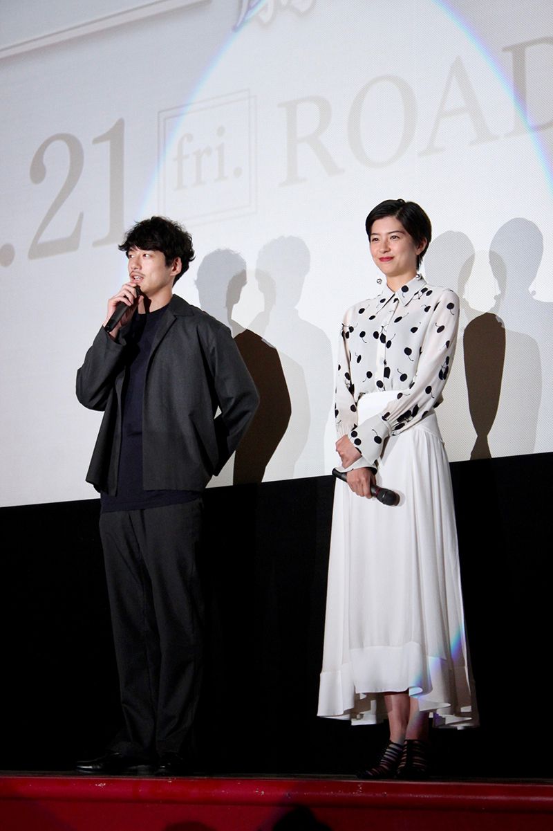 坂口さんが登場するや、場内の至るところから「健ちゃ~ん」と叫ぶ声が。それに坂口さんも両手を挙げて答えながら登壇し、「今日は短い時間ですが、たくさん映画の話をして、その後に映画を見て頂いて、皆さんの中にいい思い出として残ってくれればいいなと思います」と挨拶。佐久間さんも「大阪の皆さん、こんにちは。上映前ですが、いろんなことをお話しできればと思います。よろしくお願いします」と挨拶し、舞台挨拶がスタート!
