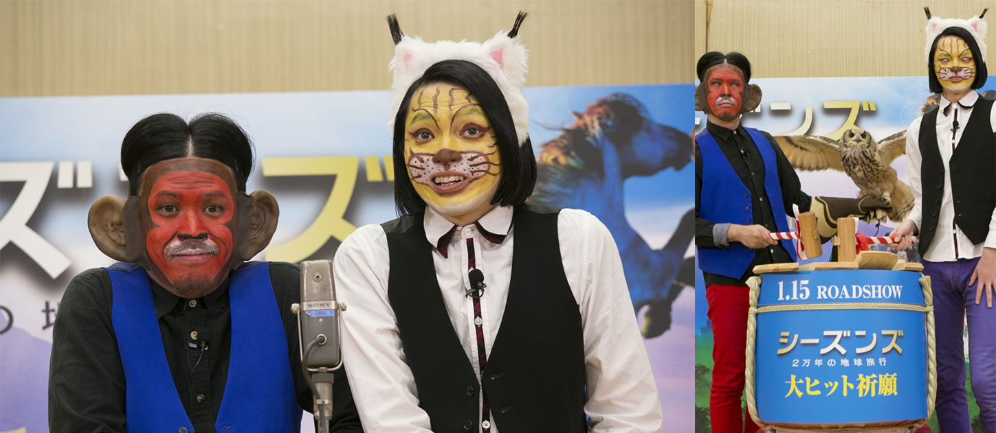 イベントの最後には、映画にも登場した“福”を呼ぶと言われる本物の<フクロウ>も登場。フクロウと一緒にシーズンズのヒットを祈願して鏡開きを実施した。