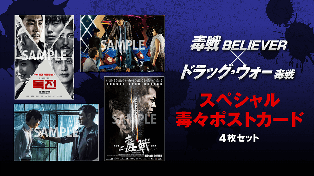 映画ライターのよしひろまさみちと西森路代によるスペシャルトークショーも決定!さらに来場者には、ここでしか手に入らない<『毒戦 BELIEVER』×『ドラッグ・ウォー 毒戦』スペシャル毒々ポストカード 4枚セット>をプレゼント!
