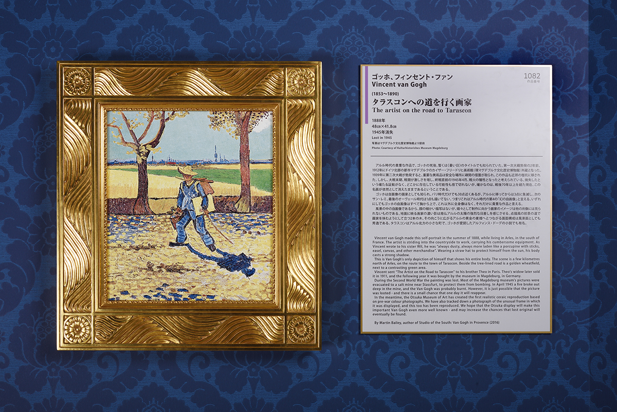 7つのヒマワリの展示室では、第2次世界大戦中、数奇な運命をたどり消失したゴッホ唯一の全身自画像「タラスコンへの道を行く画家」を陶板で原寸大に再現し2018年11月3日より、一般公開・常設展示しています。