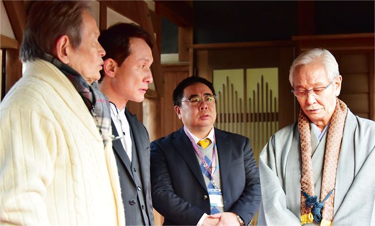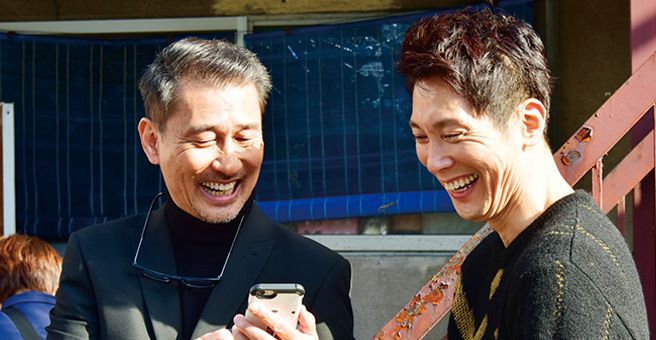 佐々木は「中井さんとご一緒させていただくのは、すごく安心感がありました。後輩にも先輩にも細かい気遣いを持って接してくださる方なので、撮影にあたっても委ねさせてもらうところが多かったです。現実でも役柄でも引っ張ってくださり、方向性を見せてくださる方です」と話す。一方、中井も「蔵之介君はとても良い共鳴をしてくれて、心地いい音で返してくれました」と共演しての手応えを語る。共演シーンの多い現場では、度々ふたりが談笑している様子もみられた。「大体どの現場でも、もう自分たちが一番上の世代になってきているけど、今回はそうではないね、なんて軽口を叩いたりしていました(笑)。この年になって、自分よりも上の世代の方が多い現場というのはなかなかないですからね。近藤正臣さん、芦屋小雁さん、寺田農さん、坂田利夫さんといった自分たちよりも気遣いをしてくれる先輩方がいらっしゃる現場は安心感がありました」と中井は微笑む。そんなふたりについて監督は、「何しろ撮影まで時間がなく、撮影日数も少ない現場でしたが、おふたりが作品の中のご自身の役割をとてもよく考えた上で臨んでくださり、シナリオへの理解も深く、演出する上で日々助けられました」と絶賛する。互いに対しても、全体に対しても、しっかりとコミュニケーションを取り合い、プロの仕事をする中井と佐々木だからこそ、短期決戦となった準備・撮影期間を乗り越え、最高の現場を作り上げたのだろう。